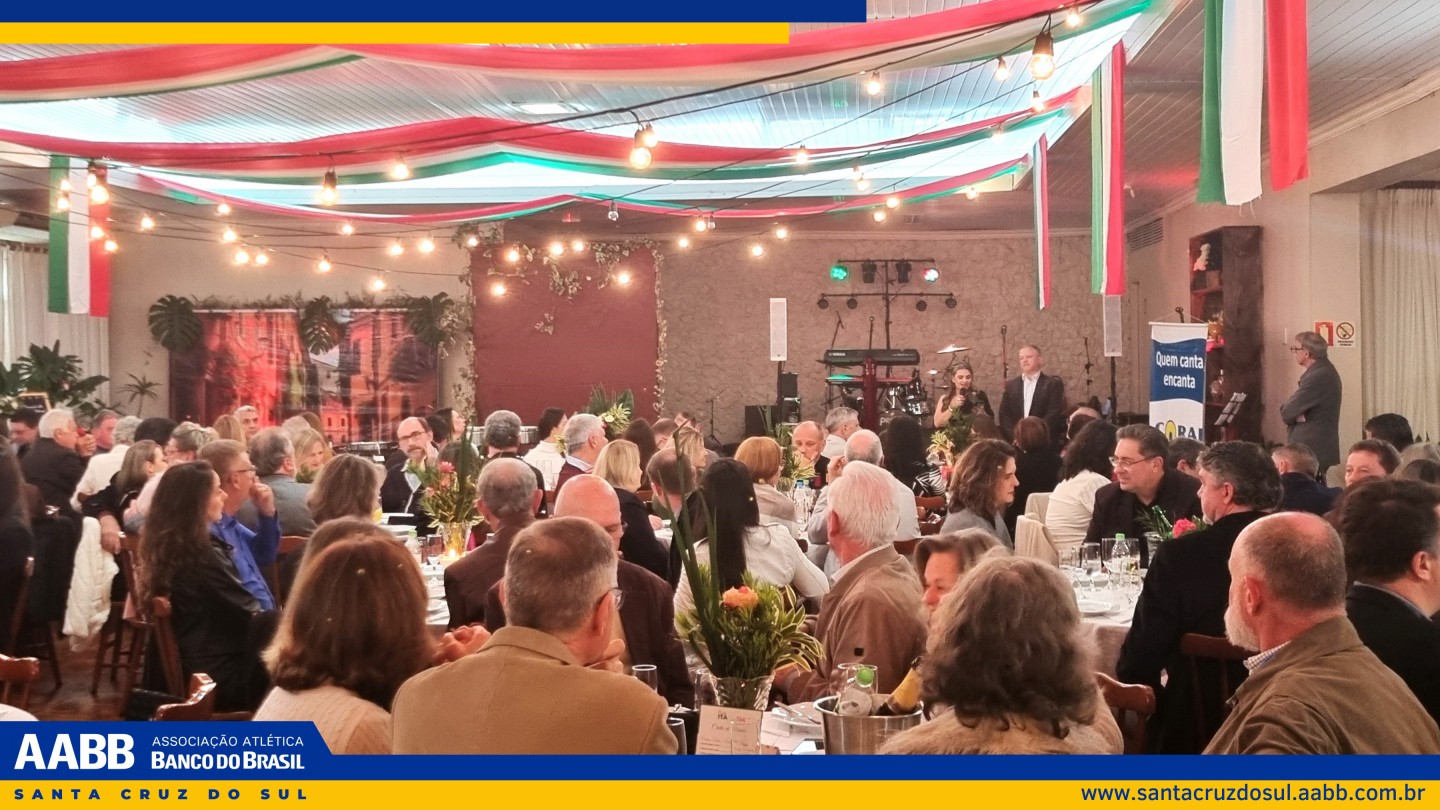 A AABB Santa Cruz do Sul agradece profundamente a presença de todos que prestigiaram a festa. A participação entusiasmada do público e a energia contagiante fizeram desta Noite Italiana um evento memorável, reforçando os laços de amizade e convivência que são a essência do clube.