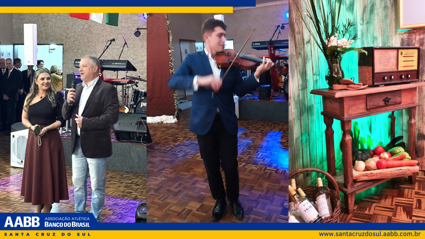 Logo na recepção, o público foi recebido pelo violinista Luís Eduardo Kaufmann, que emocionou a todos ao executar canções típicas da Itália. Em seguida, o presidente da AABB, Ronaldo Pereira Rodrigues, e a vice-presidente social, Lisandra Faccin, deram as boas-vindas, destacando a importância da noite para o clube e para a comunidade.