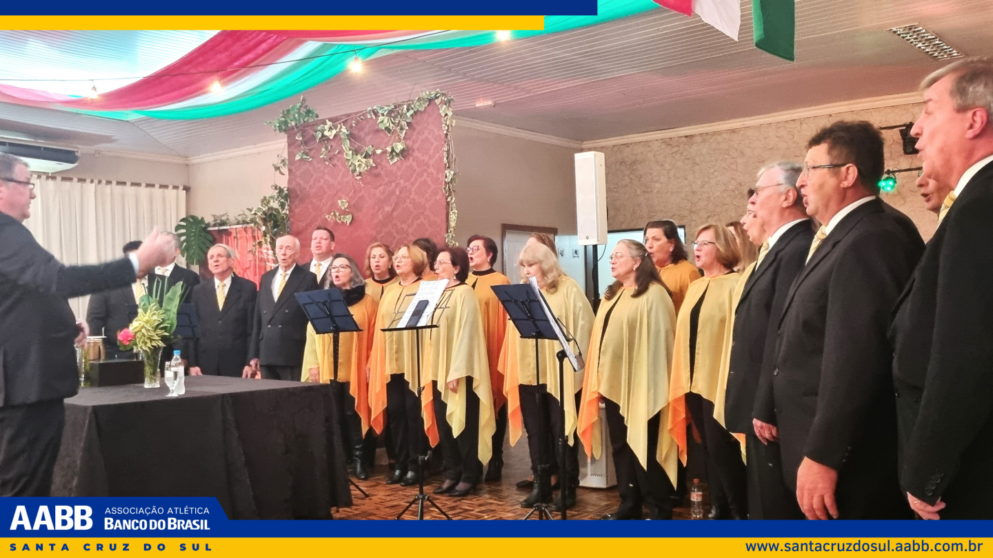 Um dos momentos mais marcantes da festa foi a apresentação do Coral da AABB Santa Cruz do Sul, sob regência de Celso Pedro Sehnem. O grupo interpretou as músicas Tornerò e Va, pensiero, emocionando o público, que aplaudiu de pé os 27 coralistas.