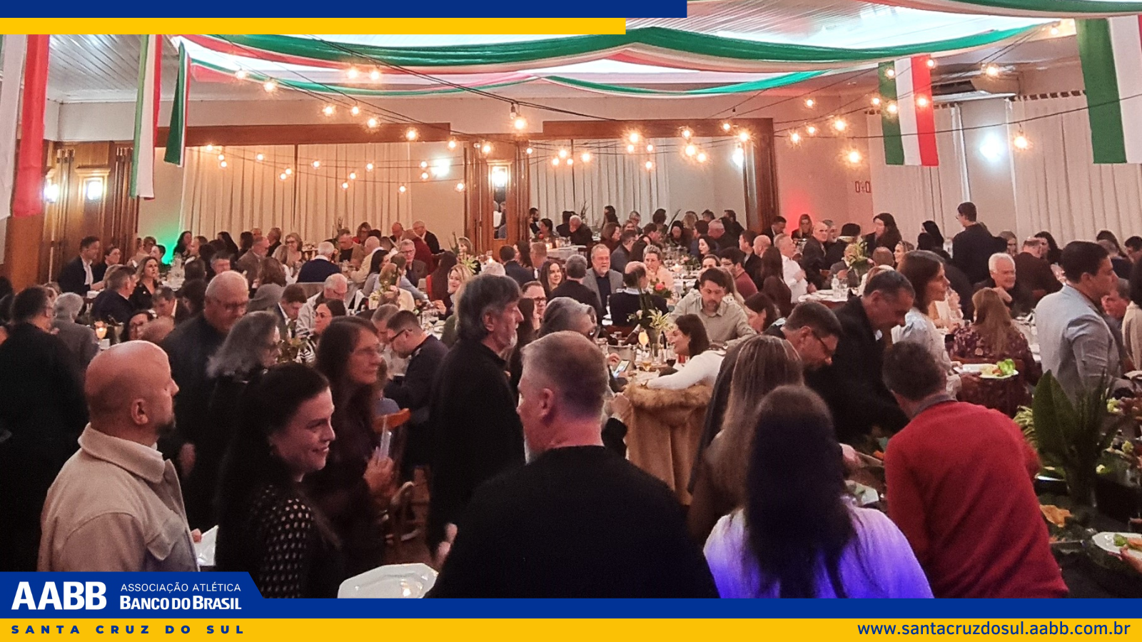 A AABB Santa Cruz do Sul agradece profundamente a presença de todos que prestigiaram a festa. A participação entusiasmada do público e a energia contagiante fizeram desta Noite Italiana um evento memorável, reforçando os laços de amizade e convivência que são a essência do clube.